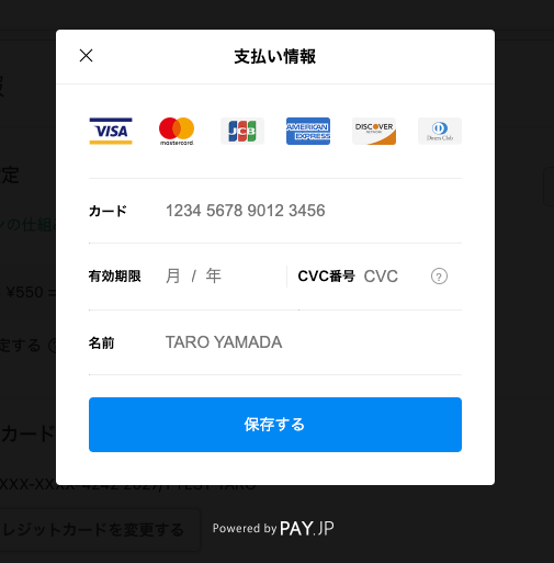 2. 変更するクレッジットカードの情報を入力し、「保存する」ボタンをクリック