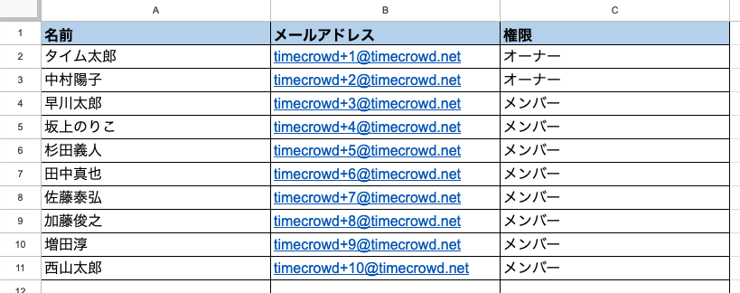 TimeCrowdを利用する従業員情報をご記載ください。