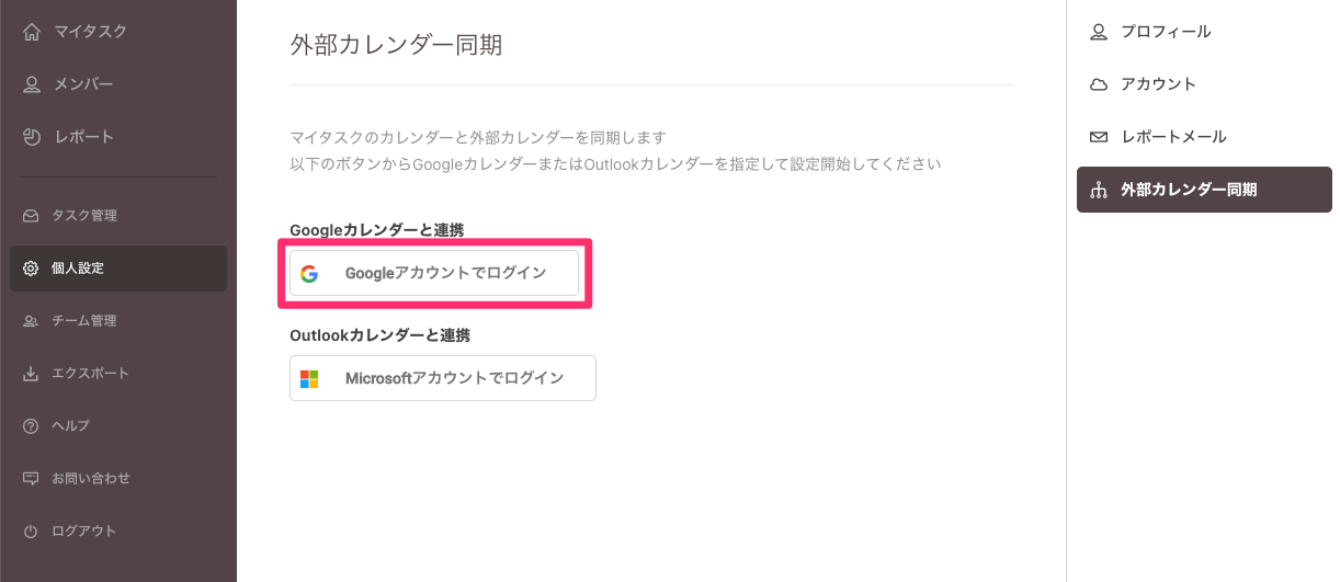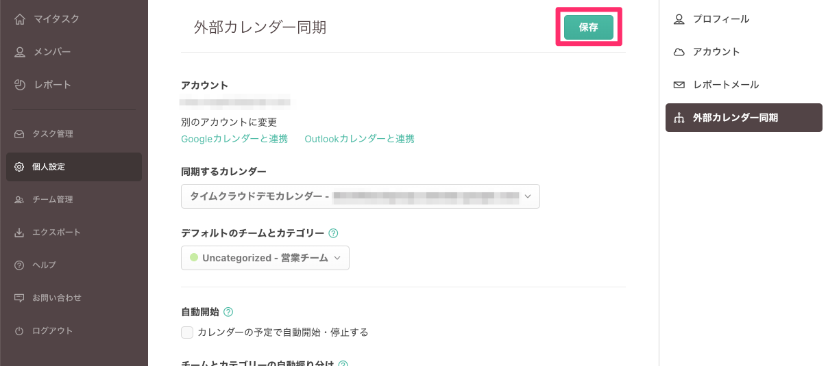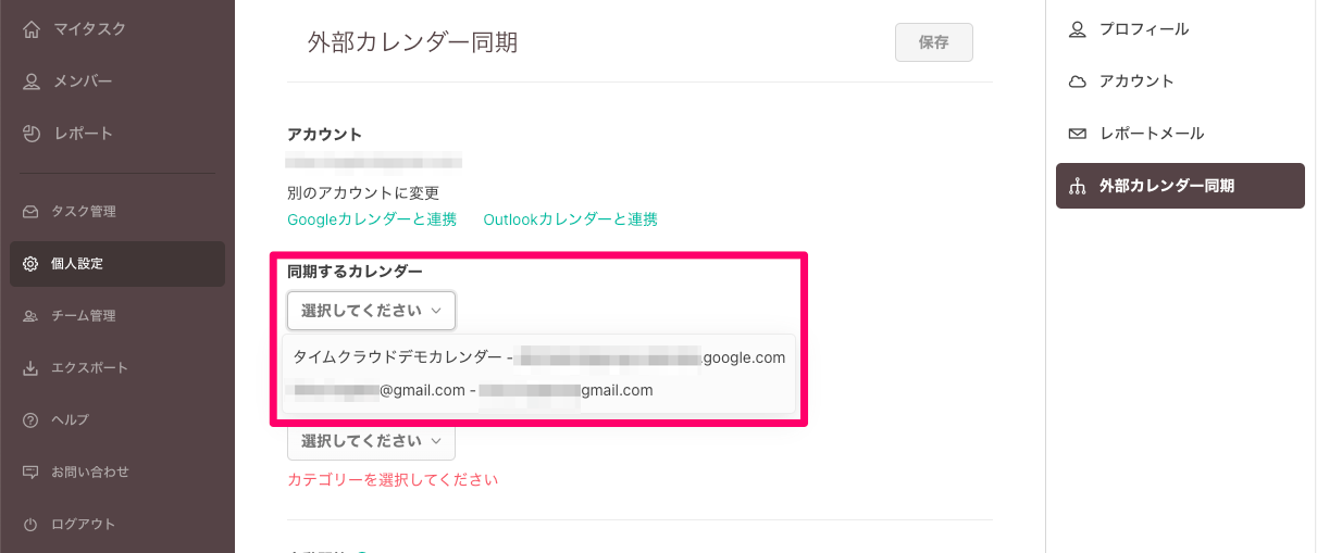 ※TimeCrowdのカレンダーと同期できるカレンダーは1つのみです。