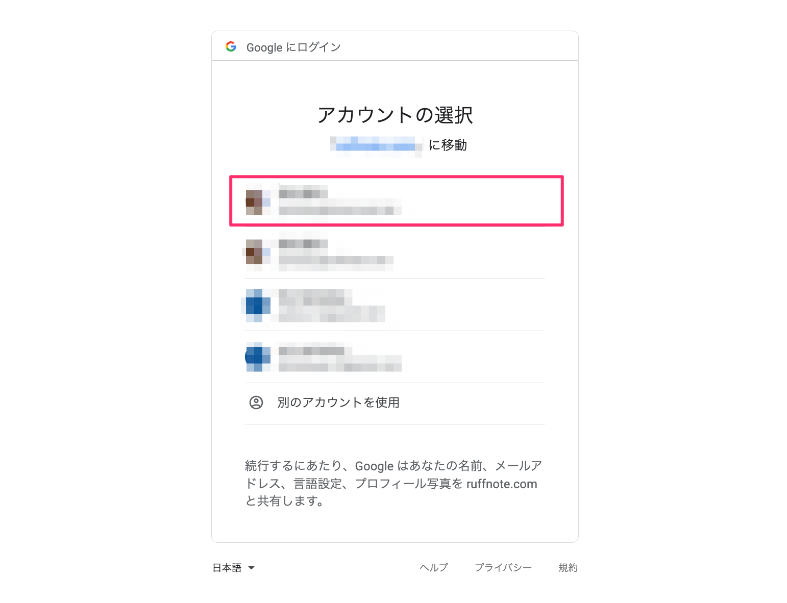 ※ログインに使用しているGoogleアカウント以外を選択することも可能です。