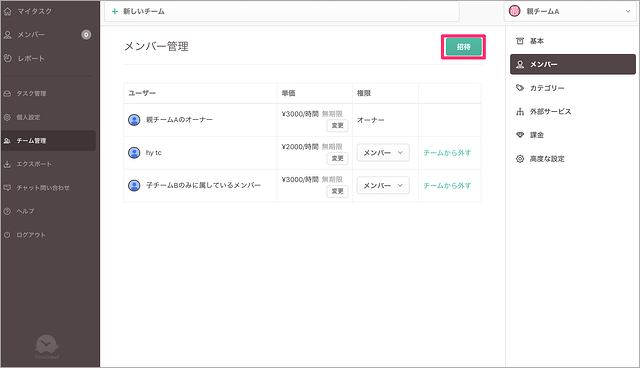 招待を受け取ったメンバー側の手順は「【メンバー】招待を受け取って参加する」でご確認いただけます。