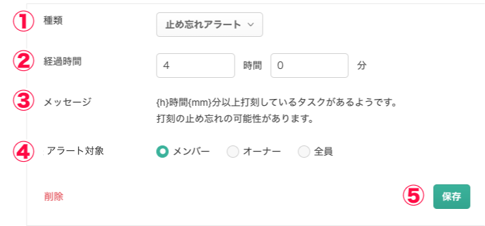 打刻漏れや止め忘れのアラート通知を送信したい(オーナーのみ)