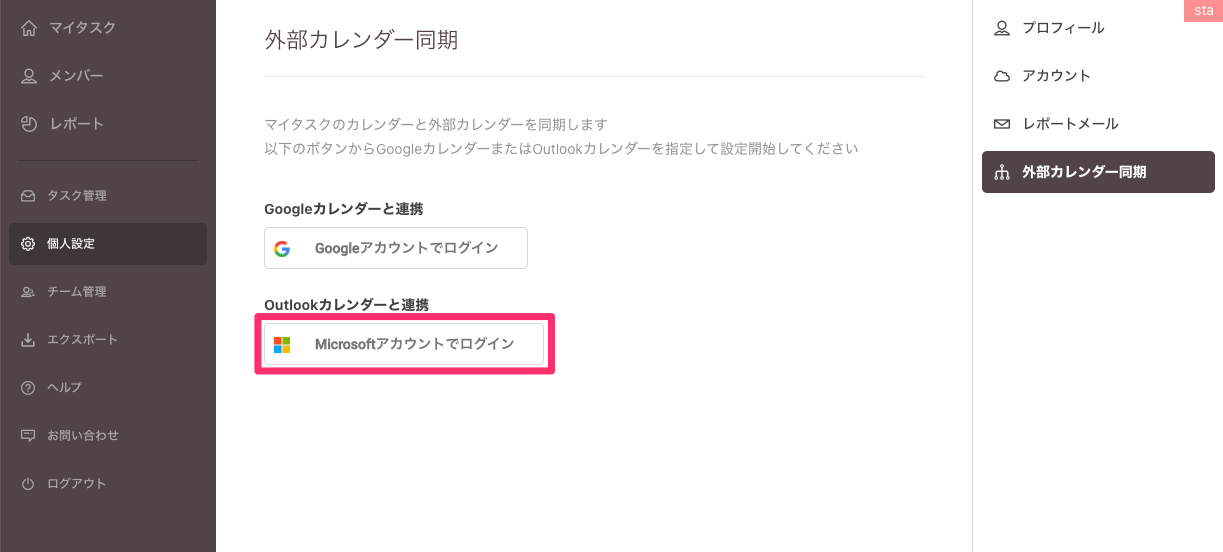 ※TimeCrowdのカレンダーと連携できるMicrosoftアカウントは1つのみです。