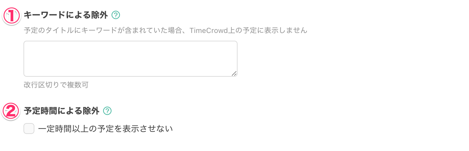 カレンダーの予定のタイトルに指定したキーワードが含まれていた場合、TimeCrowd上のカレンダーに表示しません。