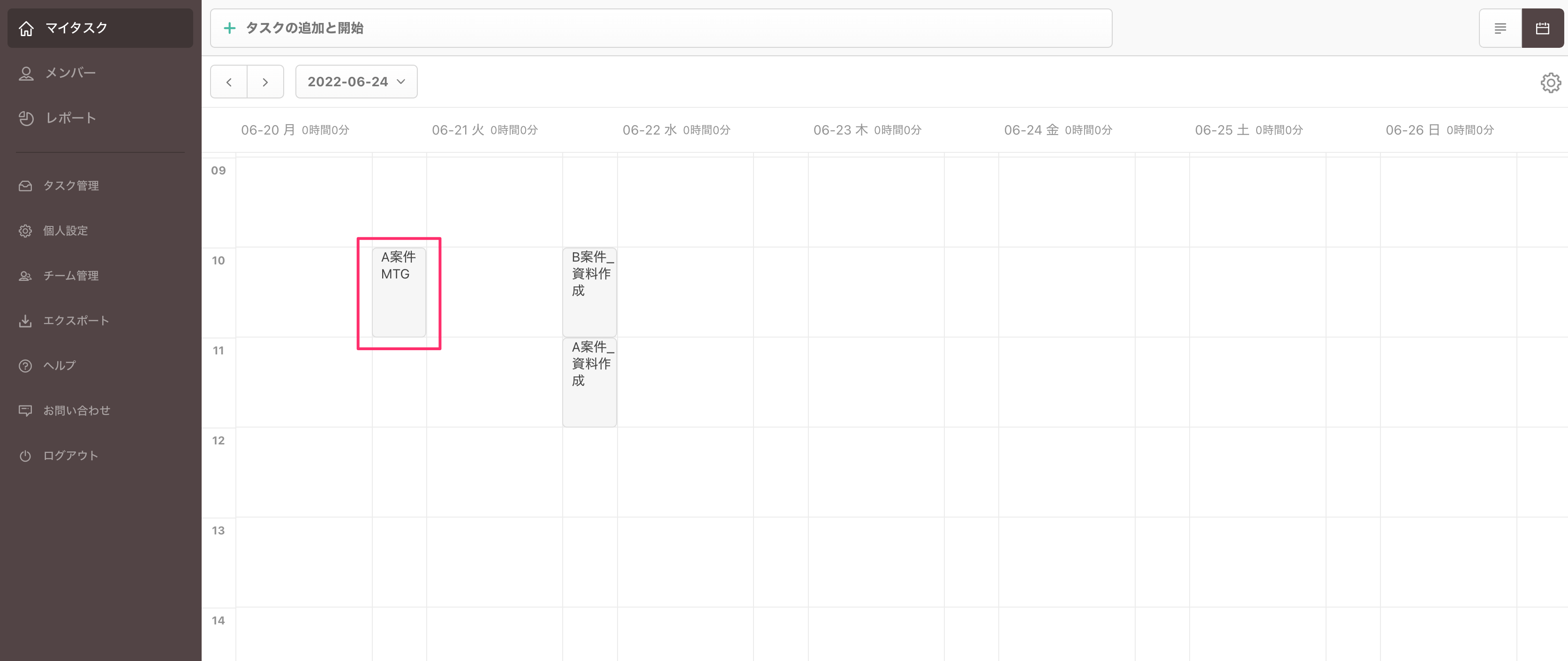 マイタスクのカレンダービューに表示されたカレンダーの予定から、打刻を開始することができます。