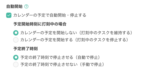 - カレンダーの予定の終了時刻で打刻を自動で停止したい場合